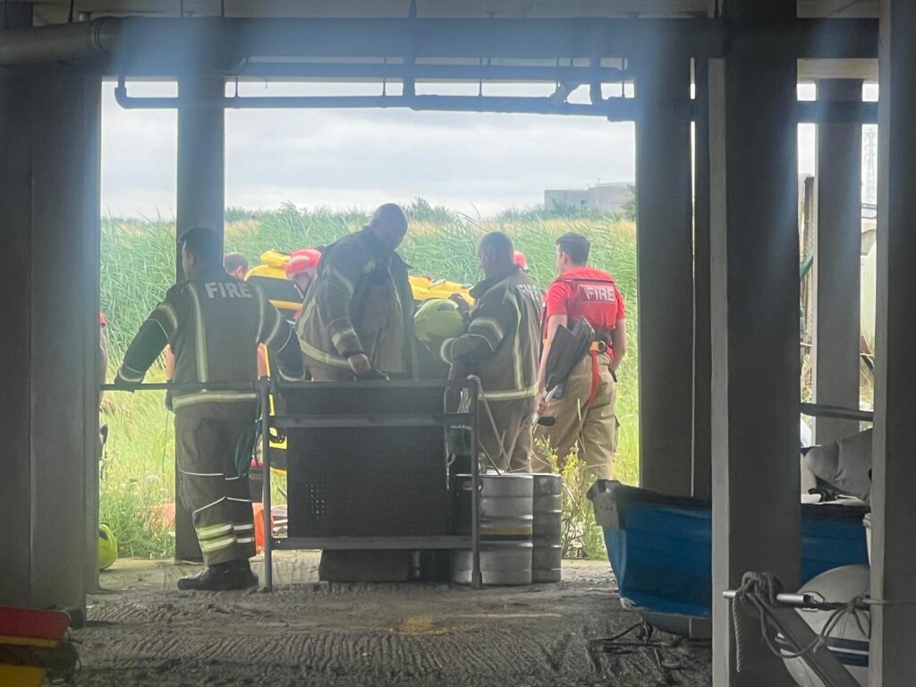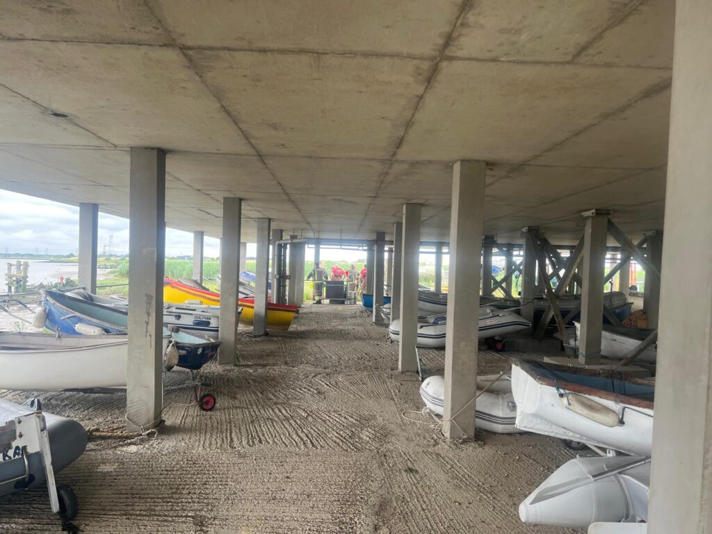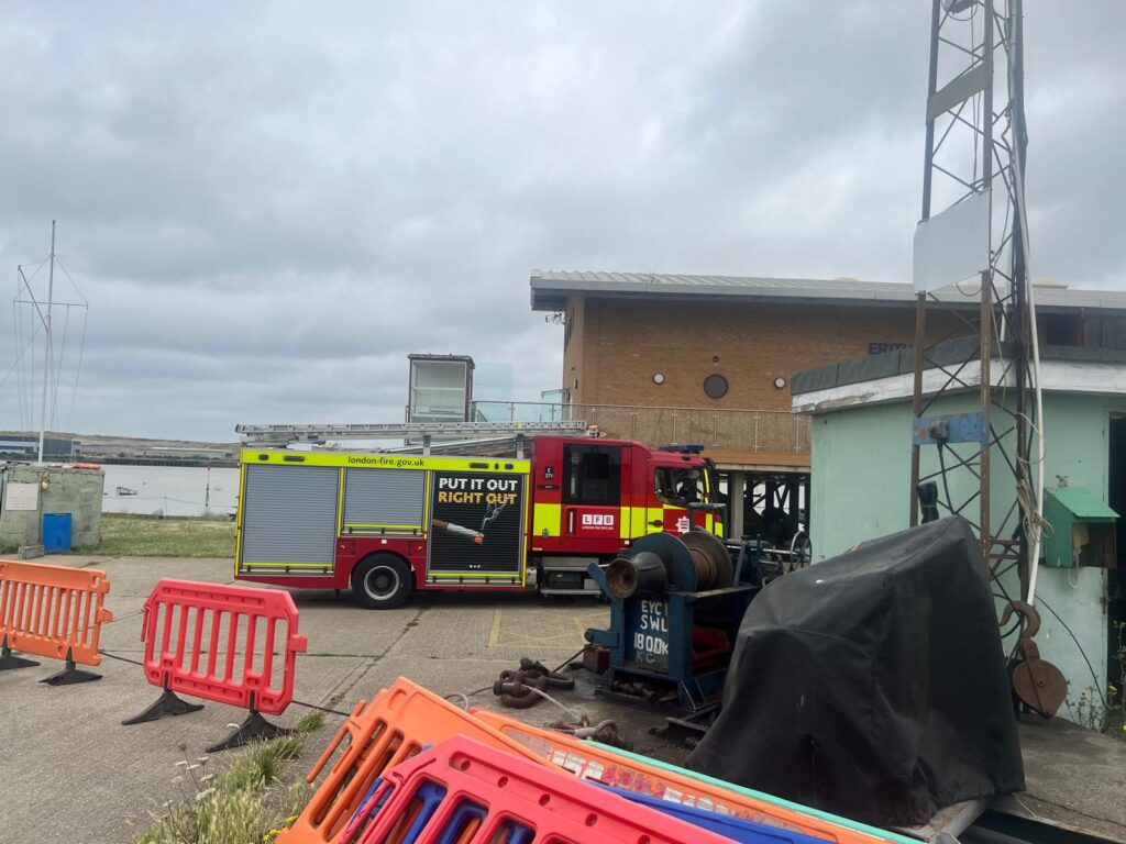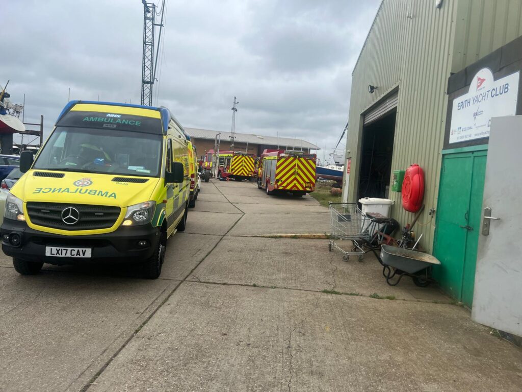 Utilising knowledge practice for such situations gained from training sessions around Erith Yacht Club such as Operation Mudlark – Crews from RNLI Gravesend, London Fire Brigade Erith and Plumstead fire stations as well the London Ambulance Service who used the club as a base to access the river, bring the man ashore and provide treatment on the scene.