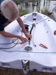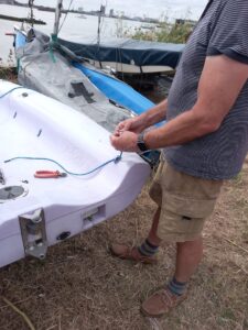 Ahead of the event tomorrow our dedicated team of members have been working making sure our club dingies are ready to sail. Yesterday they were at the club renewing the traveller on one of our four Picos, ready for this Sundays sailing event.