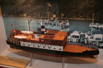 We have had some visitors from Norway to Folgefonn who are interested in her history, she was apparently quite revolutionary when designed. The adjoining photo (Erik Ask, Bergen) shows a model which can be seen in the Bergen Maritime Museum. Folgefonn is quite an important ship in the development of ferries, being we believe the first purpose designed RORO (roll on roll off) ferry in the fjords, Below is a flyer we obtained, produced by the HSD shipping company, probably shortly before she was retired from service.