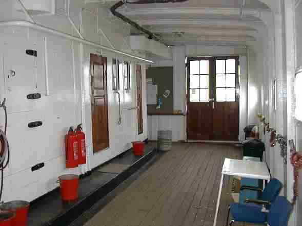 The old cardeck has been converted to a function deck with a stage with an adjoining galley. The original lower passenger saloon is available when required a second bar. The old crew cabins are mainly used for offices and storage but a couple are still available for sleeping if required. The aft steering position is now the race officers hut, it affords a clear view if the river and races are started from here.